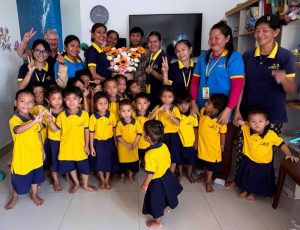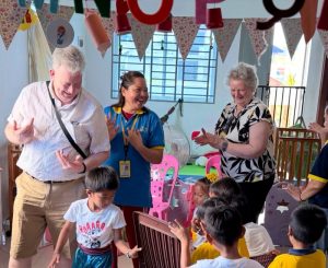 We also had our good friends George and Carolyn visit. The children gave them a very warm welcome and took their hands to guide them to their seats. The older children then danced and sang for them, then it was time for George and Carolyn to join in with a game of musical chairs – the children won of course.